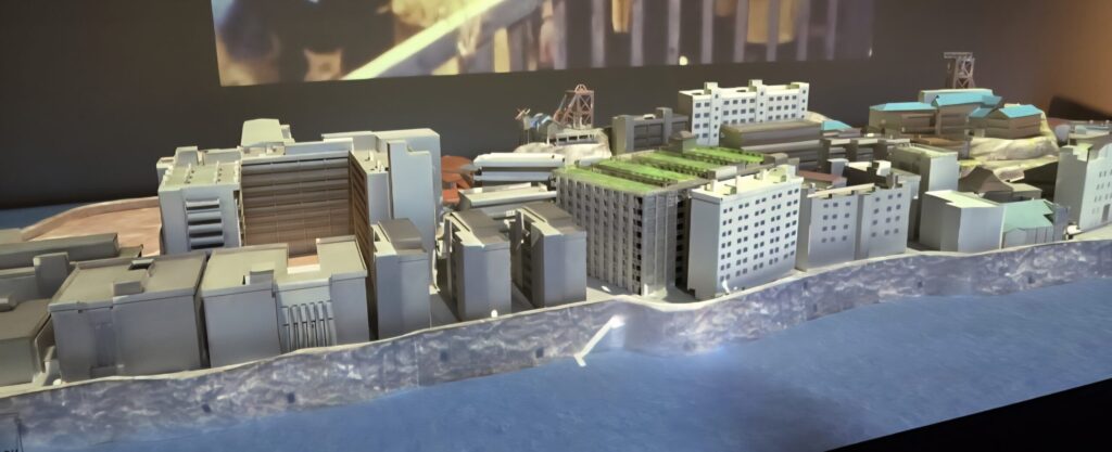 ツアーはまず「軍艦島デジタルミュージアム」から始まる。