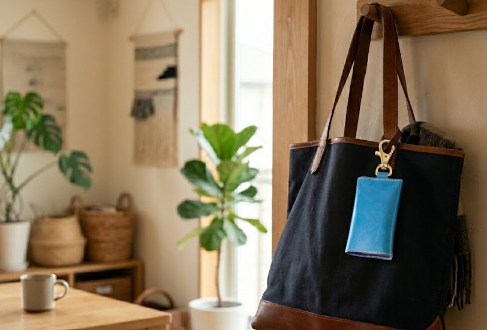 バッグの中をごそごそ探す時間が地味にストレスらしく、 すぐ取り出せるように外につけられる