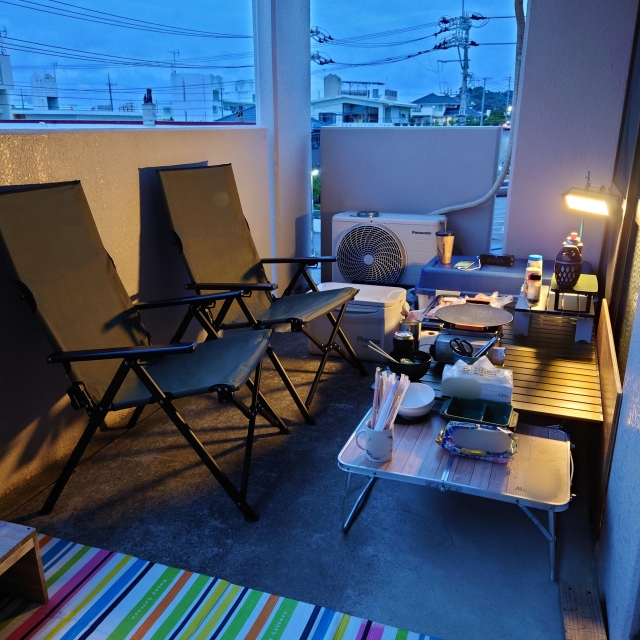 ベランダで軽く食事をしながら映画を観るのは手軽で楽しい。