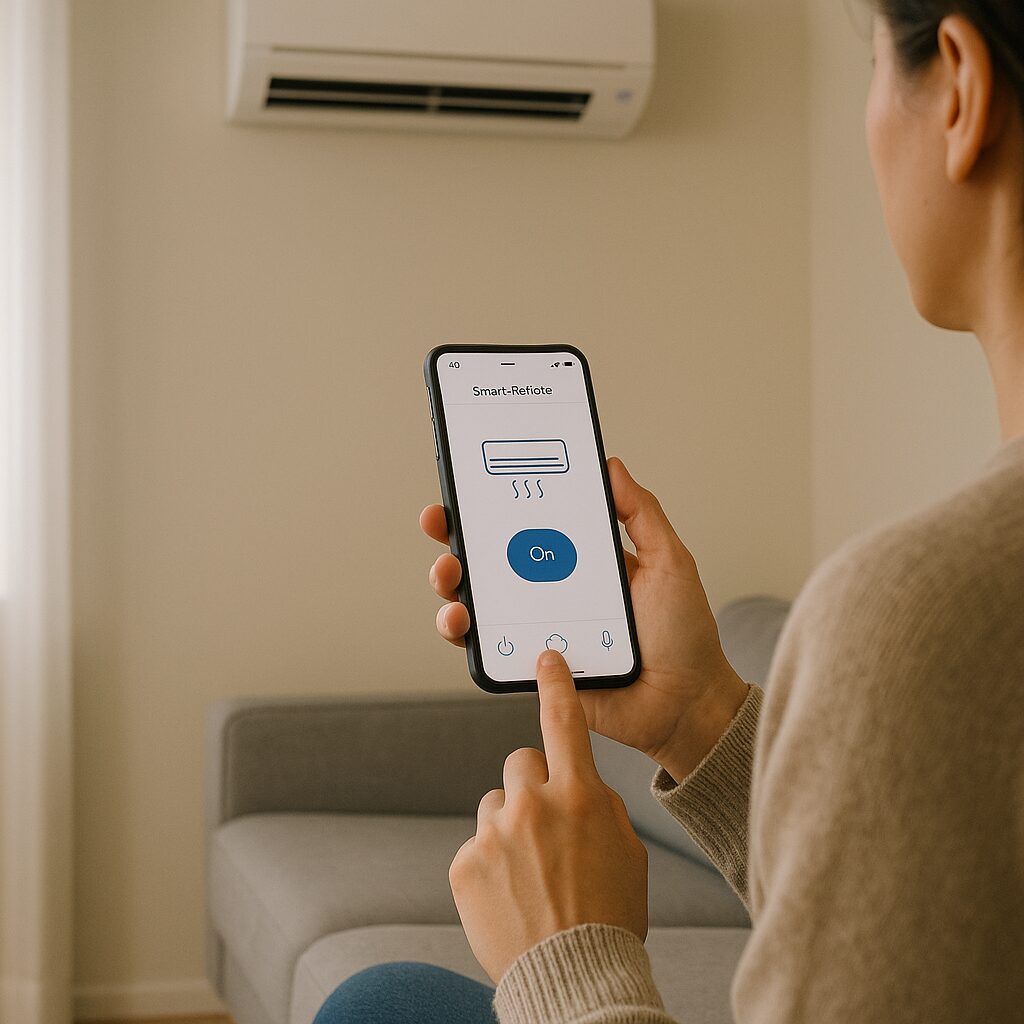 外出先からスマホでエアコンをONしておけば、帰宅時にはすでに快適な温度。