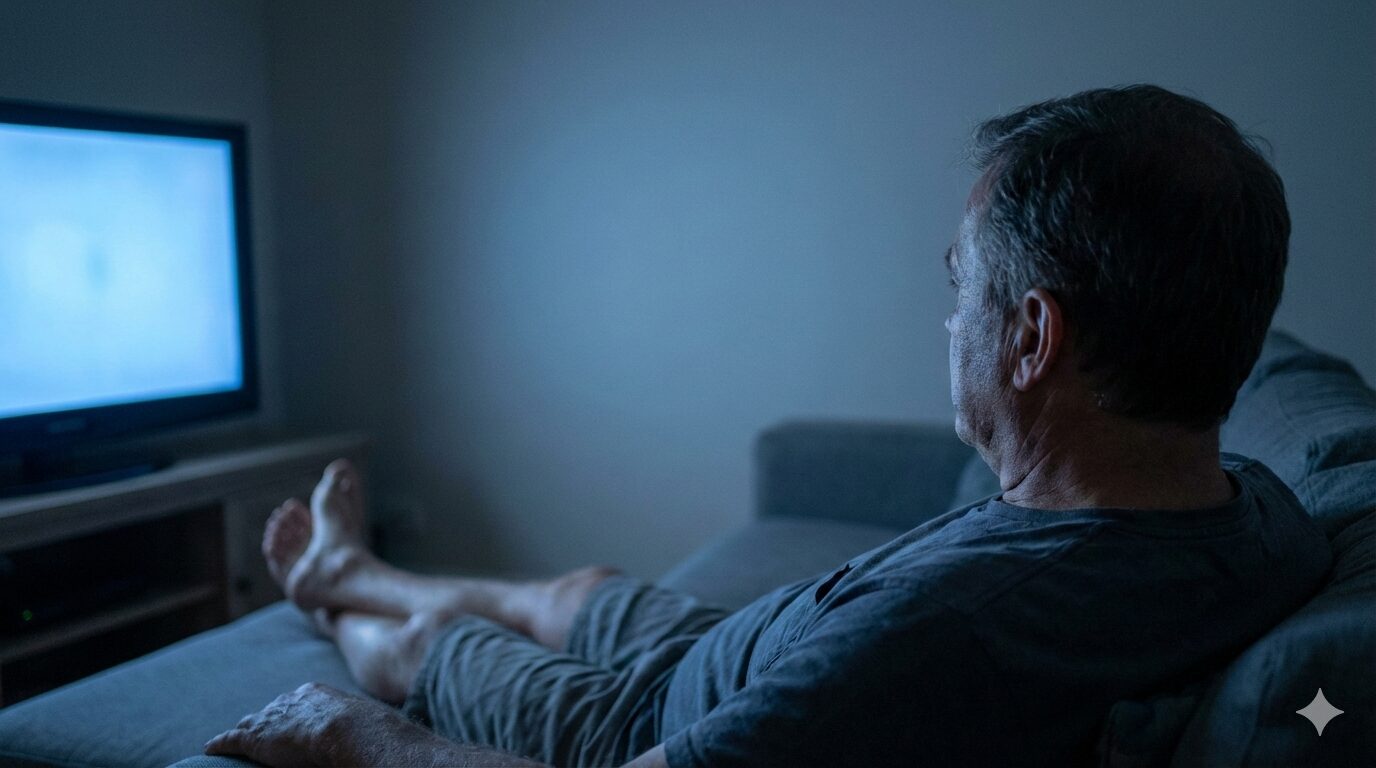 夜、ソファに座ってテレビをつける。