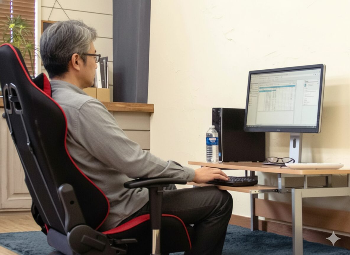 在宅勤務(テレワーク)が日常になって久しいですが、朝から晩まで同じ姿勢で過ごすのは、50代の体には本当にこたえます。腰・肩・首の重だるさは、気合ではどうにもならない。気づけば「集中力・体力・時間」をジワジワ奪われている状態でした。